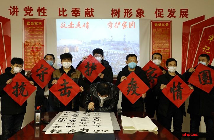 2月28日,正当矿井全面开启复工复产关键时期,中煤新集口孜东矿书法爱好者们齐聚一堂,用手中笔、心中情,书写出用一幅幅讴歌战“疫”真英雄、传播发展正能量书法作品,鼓舞全体干群抗击疫情的信心和决心,吹响了“抗击疫情,守护家园”的号角。图为,书法爱好者们正在展示自己的书法作品。