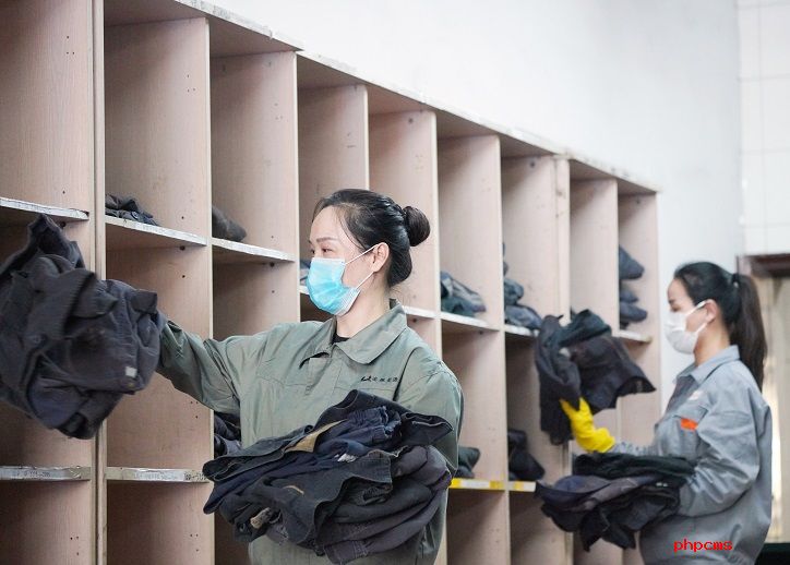 多年来,新集公司加快推进民生工程建设,推进“两堂一舍”改造等“十大关爱”工程,让企业的发展成果切实惠及广大职工,善待职工、关爱职工,切实把职工当亲人看待,让职工更体面的工作,进一步提升职工的获得感、归属感、幸福感。图为,3月24日,新集公司刘庄煤矿洗衣女工将清洗、烘干后的工服放在存放处,方便一线矿工使用。